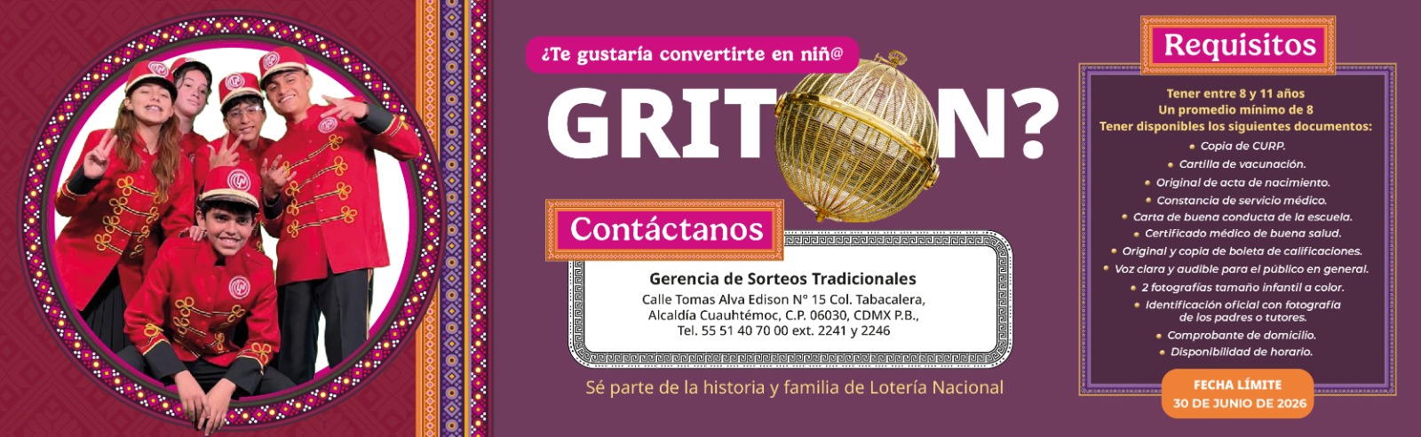 Convocatoria Niños gritones 2026