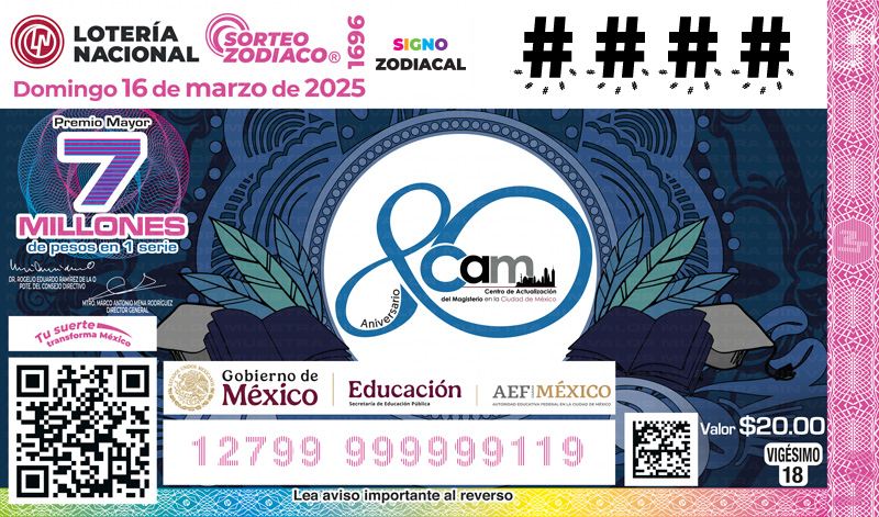 Celebrado en el “Salón de Sorteos del Edificio Édison de Lotería Nacional” Fecha: domingo 16 de marzo de 2025 Horario: 20:00 horas. Puedes seguir la transmisión en vivo del sorteo a través de nuestro canal oficial de YouTube: https://www.youtube.com/user/VideotecaLotenal