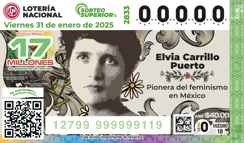 Sorteo Superior No. 2833 en homenaje a Elvia Carrillo Puerto, celebrando su